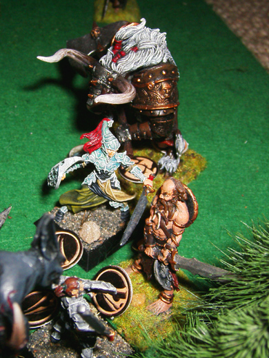 In der Folgerunde fallen die zweite Stelzenläuferin gegen Barbarengigant und Minotaurus, Menerän überlebt zwar gegen den Barbarengiganten, fällt aber in der Folgerunde. Der Rest der Elfen fällt schnell gegen den Minotaurus und das Feuerelementar...